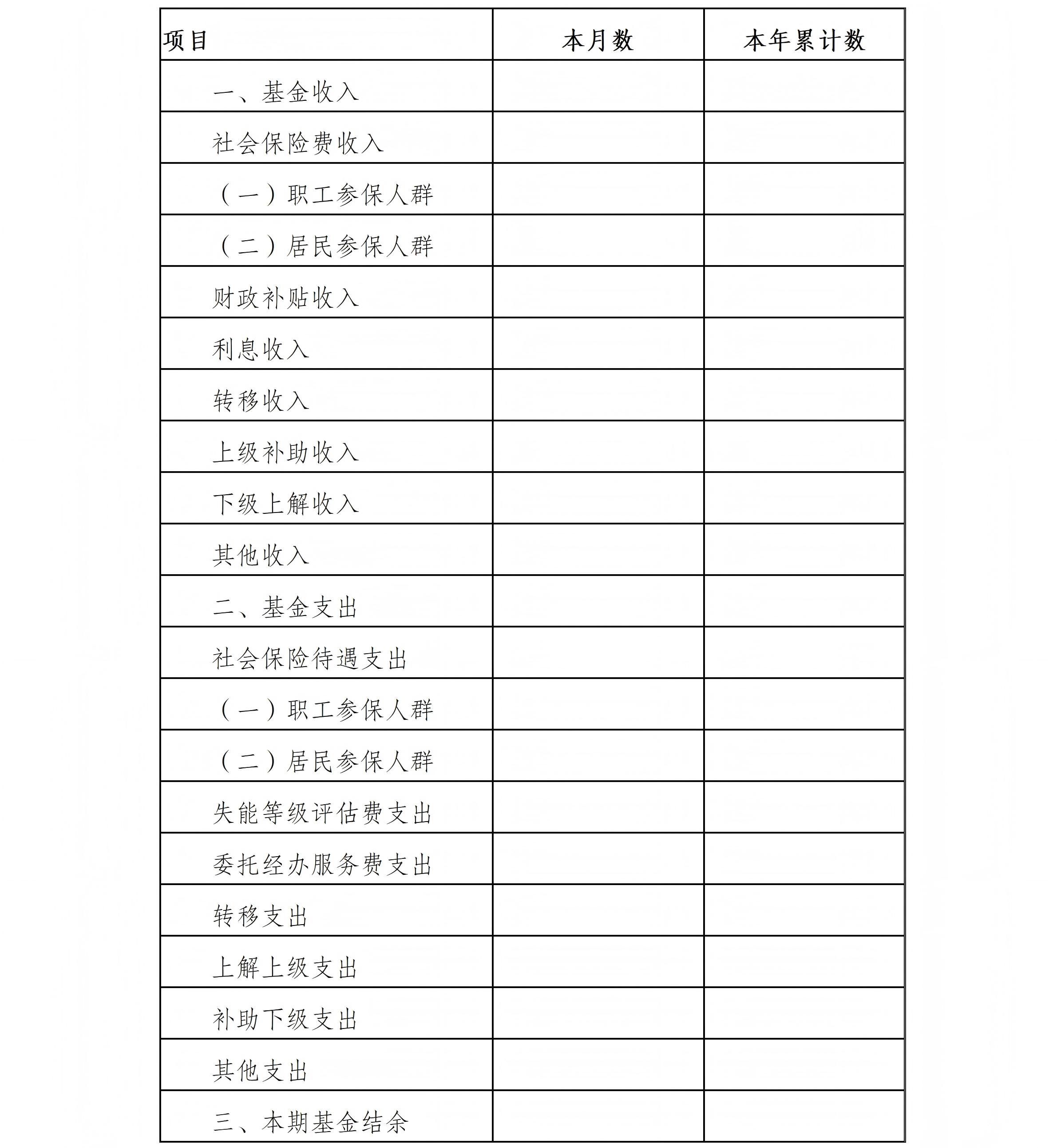 (一)长期护理保险基金的收支表格式和编制要求。