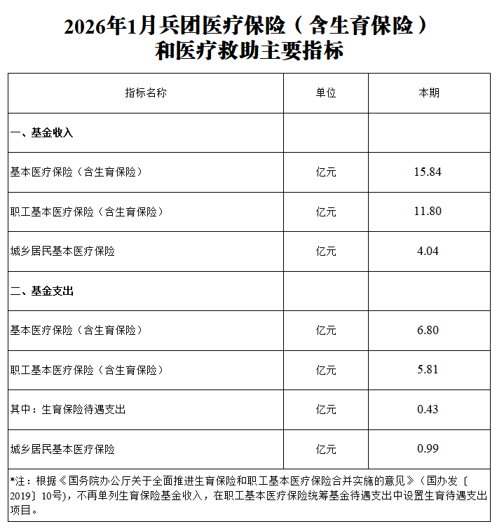 2026年1月兵团医疗保险(含生育保险)和医疗救助主要指标