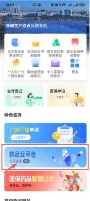 为持续深化兵团医保“走流程、找堵点”工作,进一步提升兵团医保服务水平,缓解参保职工群众“找药难、买药难”问题,近日,新疆生产建设兵团医疗保障局在“国家医保服务平台”APP、“新疆兵团医保”APP和“新疆生产建设兵团医疗保障局”微信小程序同步上线兵团医保“药品云平台”。兵团参保职工群众可通过兵团医保“药品云平台”实现“智慧查药、便捷购药、高效比价”。
