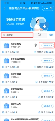 第三步:进入页面,点击“找药品”,进入查询页面,在搜索栏内输入你想找的药品名称,点击“搜索”,就可以找到你需要的药品,然后再点击“配备机构”,进入药品对应机构查询列表,默认根据当前位置可查询到附近机构的信息、价格、近3个月的采购记录及结算记录,并支持导航前往。