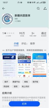 第一步:打开“国家医保服务平台”APP、“新疆兵团医保”APP、“新疆生产建设兵团医疗保障局”微信小程序,如APP未下载,请到对应应用商店进行下载。