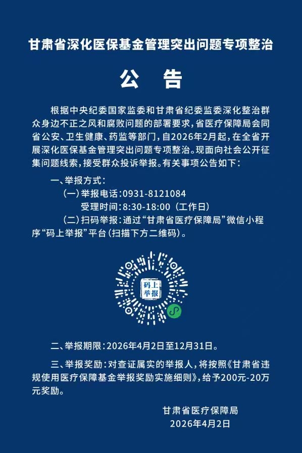 甘肃省医疗保障局深化整治公告