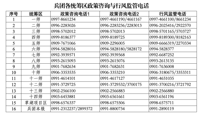 如今,兵团正式公布各统筹区医保政策咨询与行风监管电话,涵盖医保参保登记、报销结算、异地就医、基金监管等各类事项,明确专人值守、及时响应。此次电话公布,进一步畅通了群众诉求表达渠道,让医保服务更接地气、更具温度,切实将“我为群众办实事”落到实处,为守护群众“看病钱、救命钱”筑牢坚实防线。